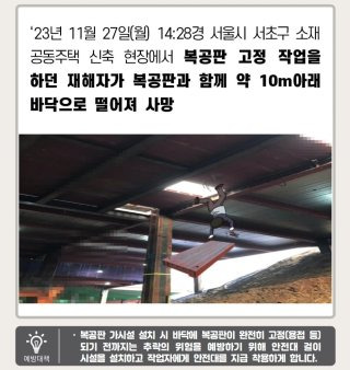 - 안전교육 및 문화개선: 작업자·관리자 대상 지속적 안전교육 강화, 현장 위험 인식 제고